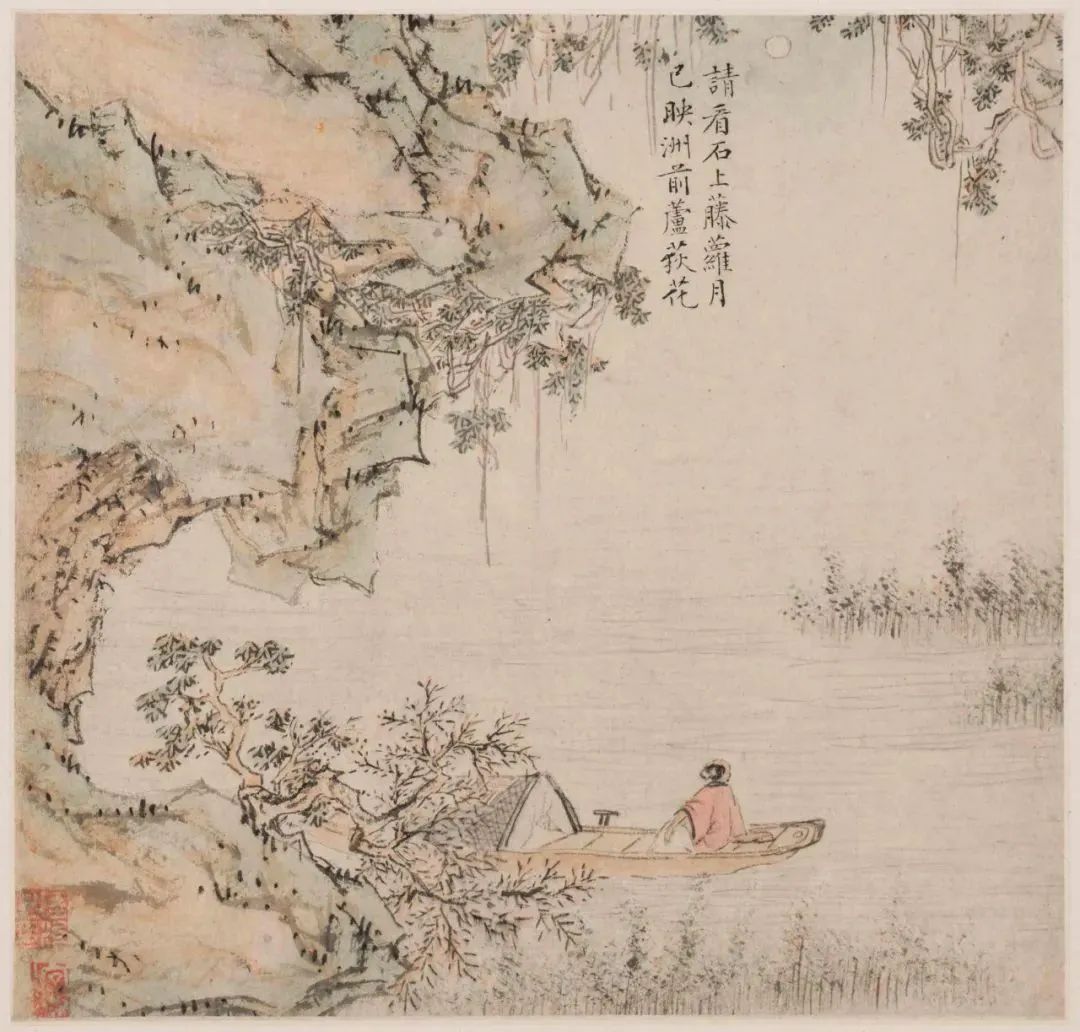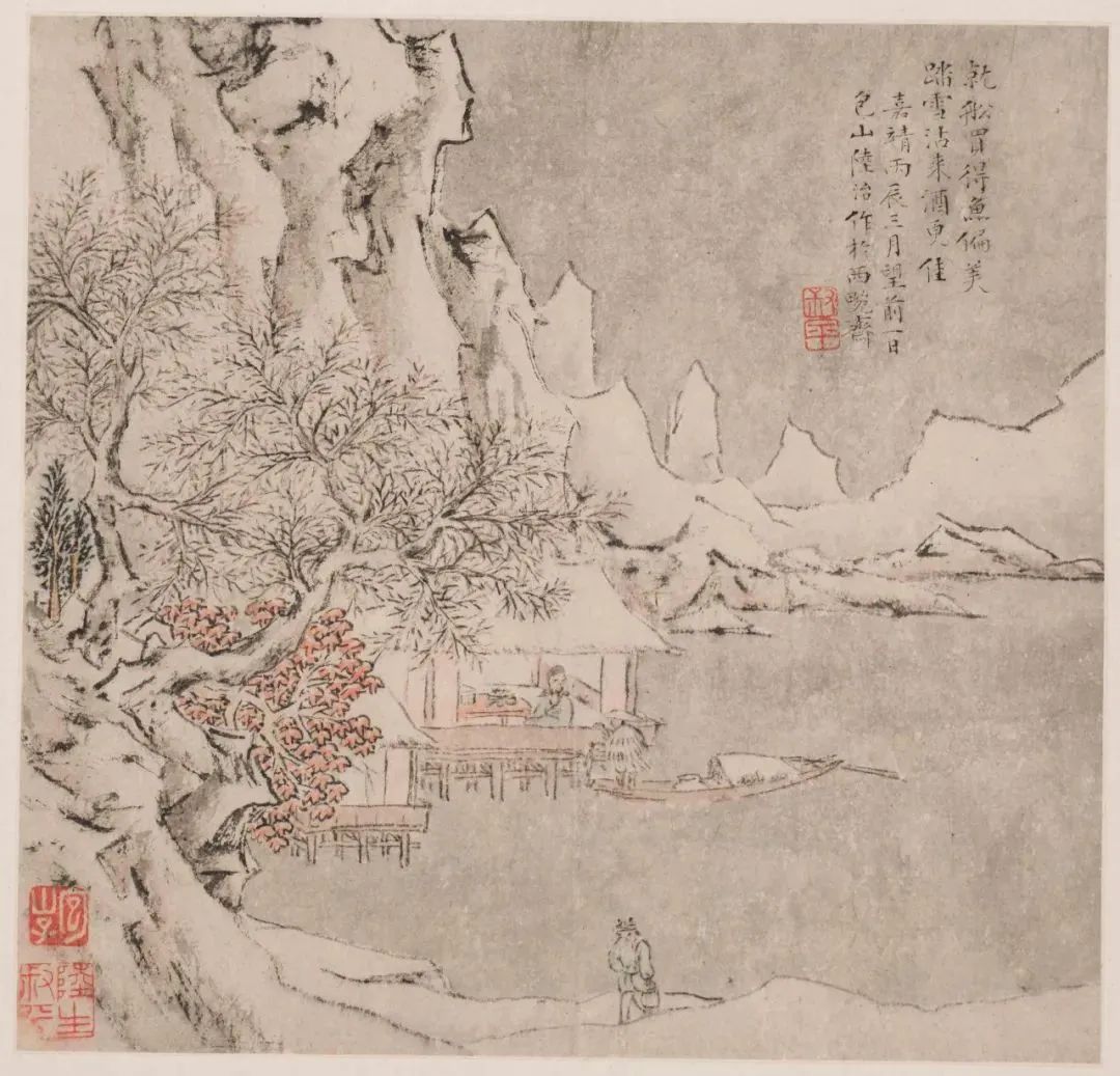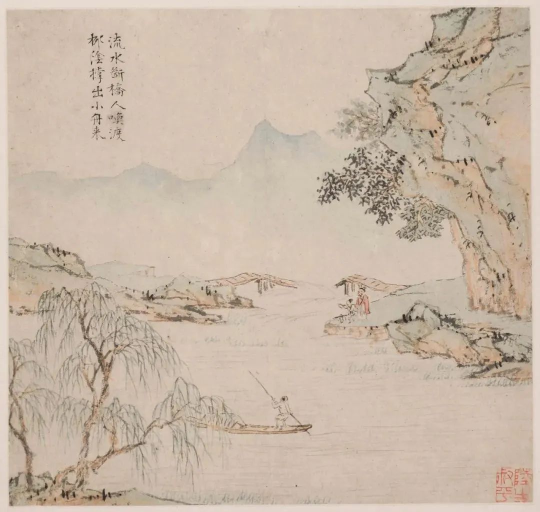 陆治的诗意山水小画,不仅注重画面的构图和技法,更着意于营造诗意的氛围。他的画作常常配以唐宋时期的诗文,诗文与画面相得益彰,共同展现出一种深远的意境和丰富的文化内涵。